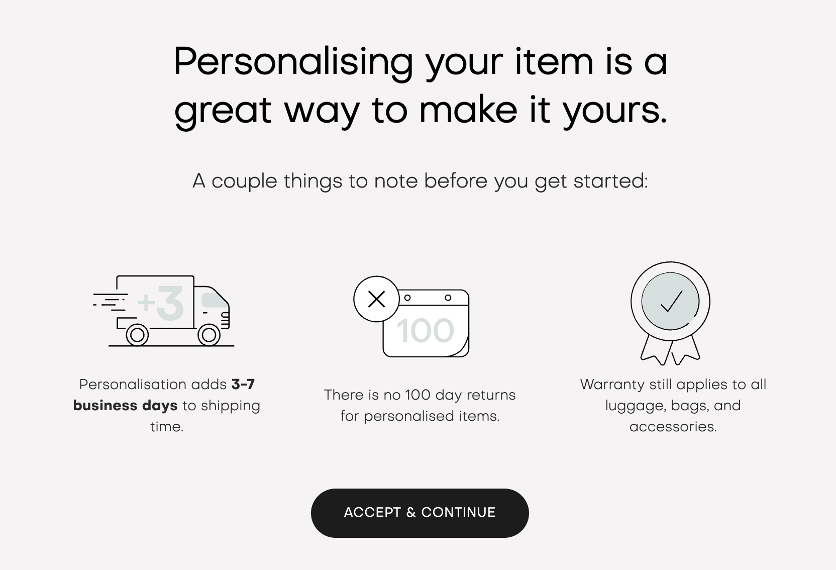 Personalising requires extra time to process your order, so it's important to plan ahead! This timeframe is generally shown before selecting your monogram and must be agreed to before proceeding.